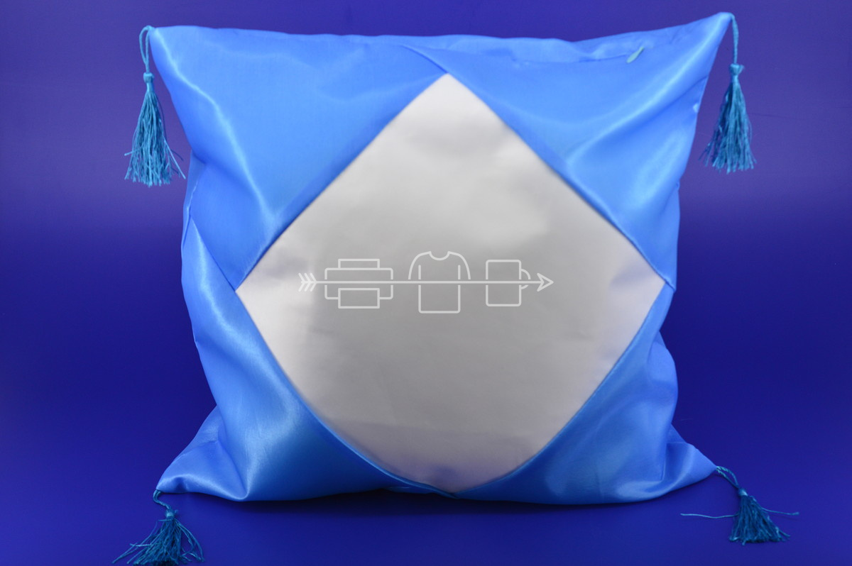 Наволочка 40х40 с белым ромбом и кисточками голубая